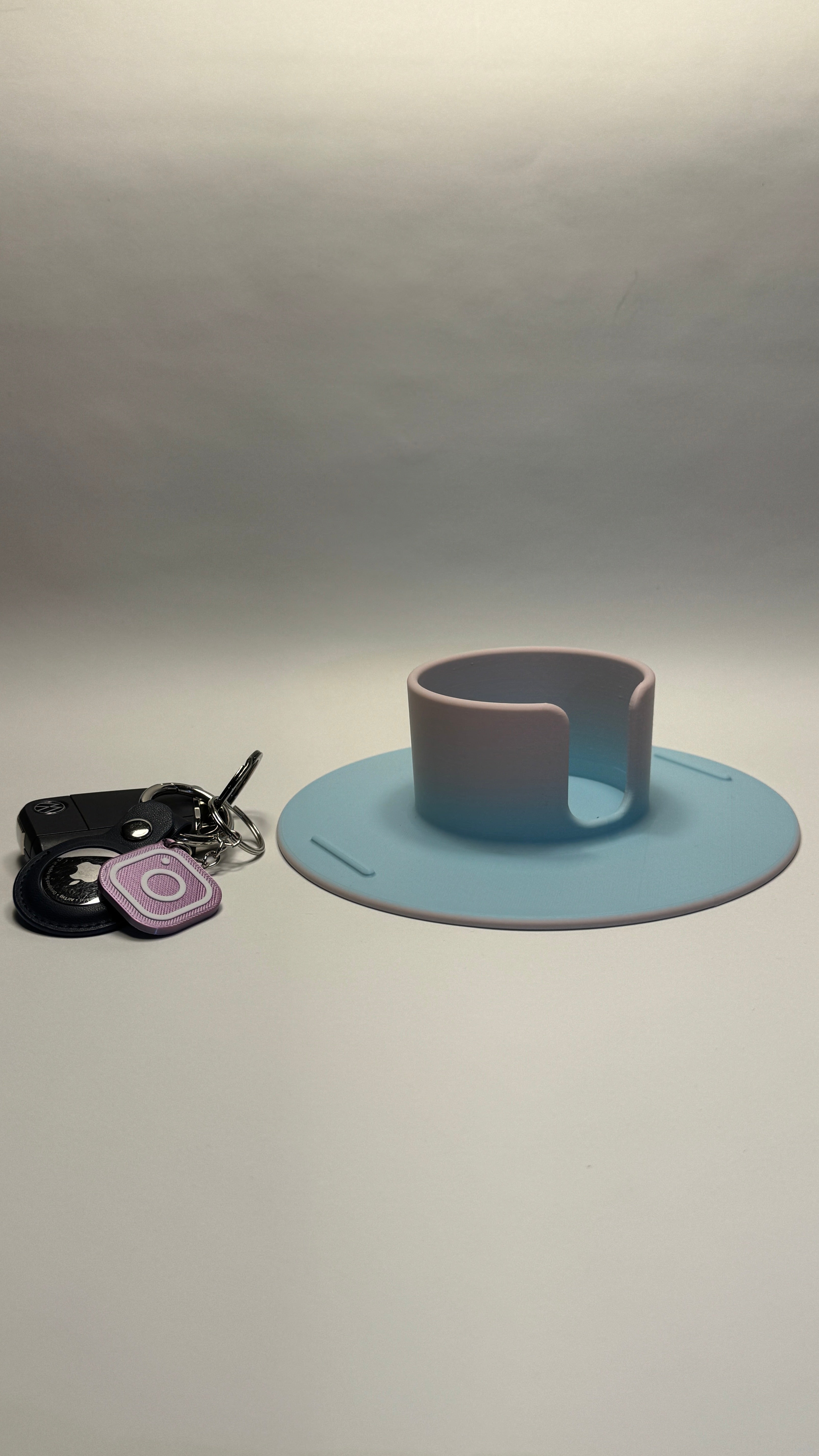 Was fehlte, war ein sicherer Platz. So entstand der Flonk: ein Becherhalter für weiche Unterlagen. Der Name? Das Geräusch, wenn der Becher in den Halter gleitet: *flonk*