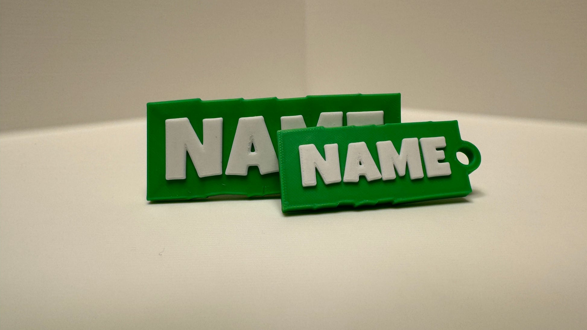 Personalisierte Namensanhänger im Doppelpack: ein kleiner für das Schlüsselbund und ein größerer für Rucksack, Sport- oder Reisetasche. Besonders beliebt als Geschenk.